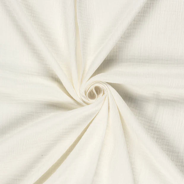 Double gauze eli kaksinkertainen harsokangas on pehmeää 100% puuvillaa. Harsokangas on hengittävä ja ilmava materiaali eikä sitä tarvitse silittää vaan kankaan kaunis rakenne saa näkyä.