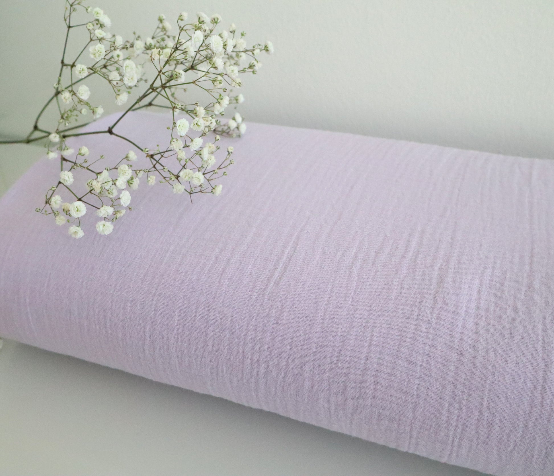 Double gauze eli kaksinkertainen harsokangas on pehmeää 100% puuvillaa. Harsokangas on hengittävä ja ilmava materiaali eikä sitä tarvitse silittää vaan kankaan kaunis rakenne saa näkyä.