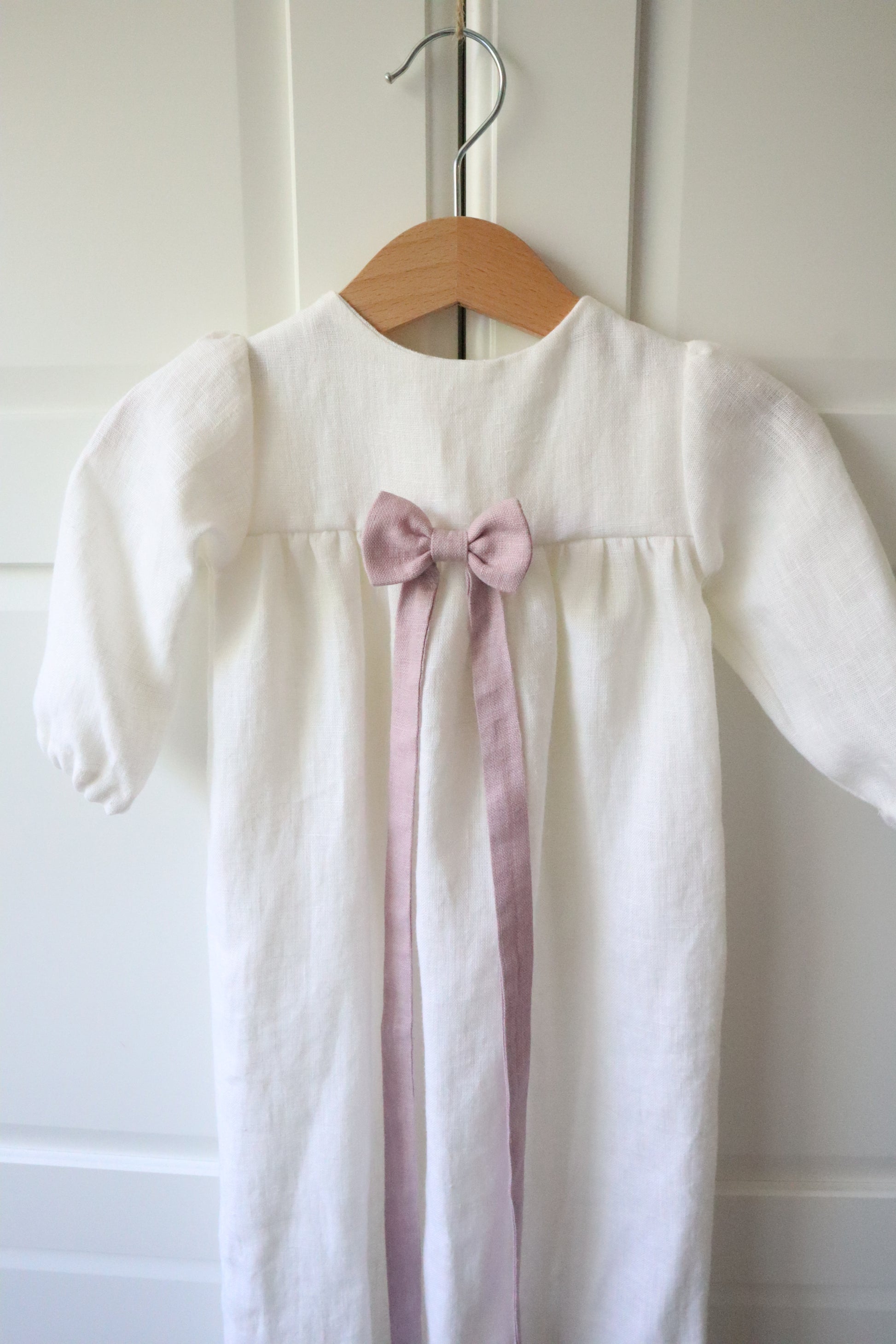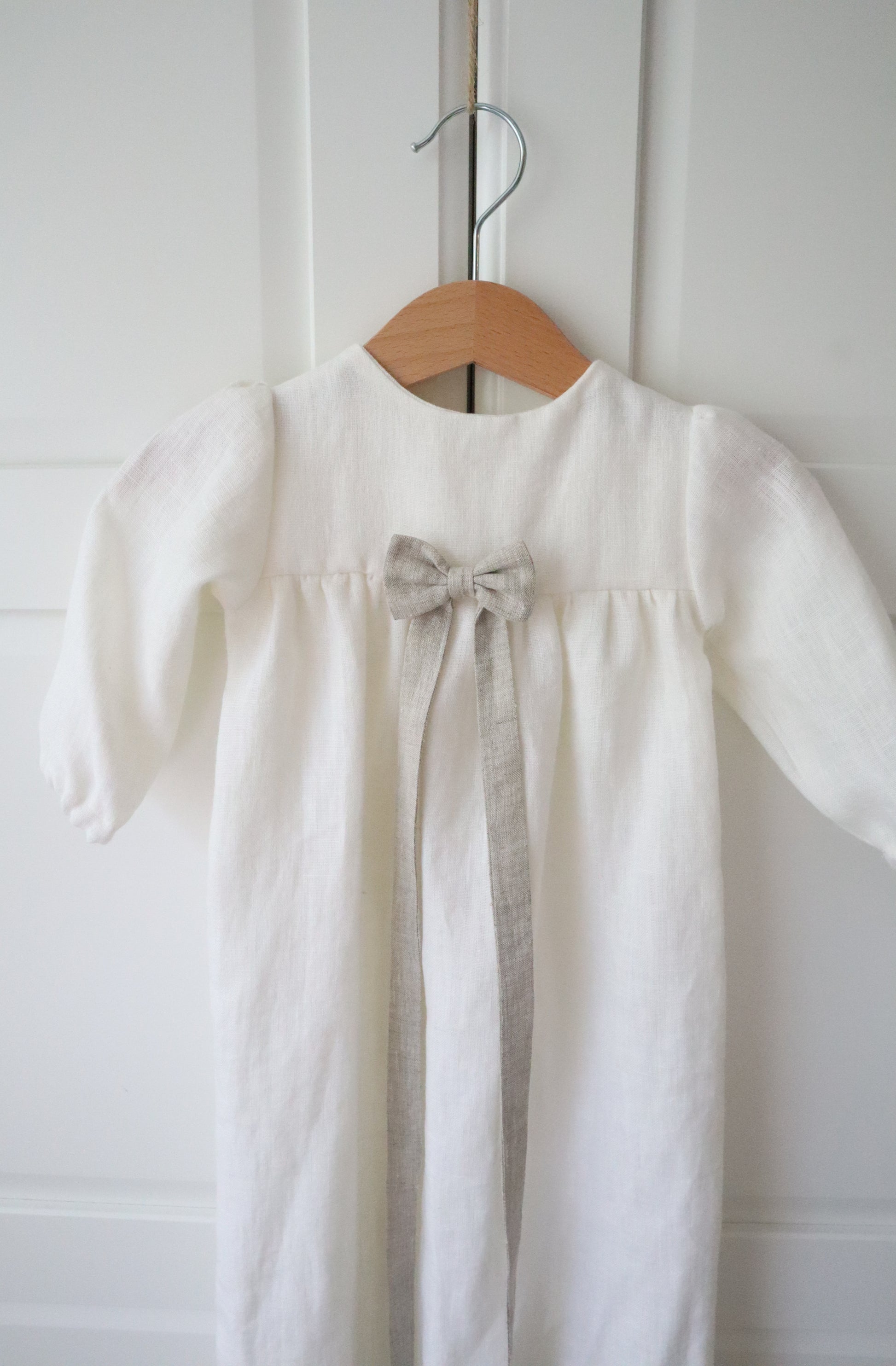 Kaunis rusetillinen kastenauha kastemekkoon. Rusetti ja nauha 100% kivipestyä pellavaa.