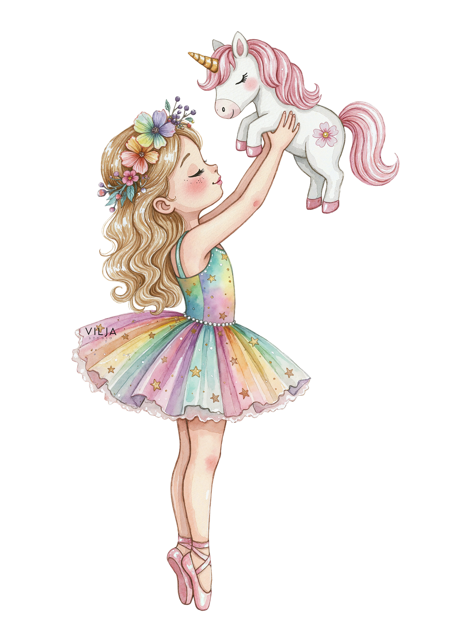 Silityskuva: Sateenkaari ballerina ja yksisarvinen