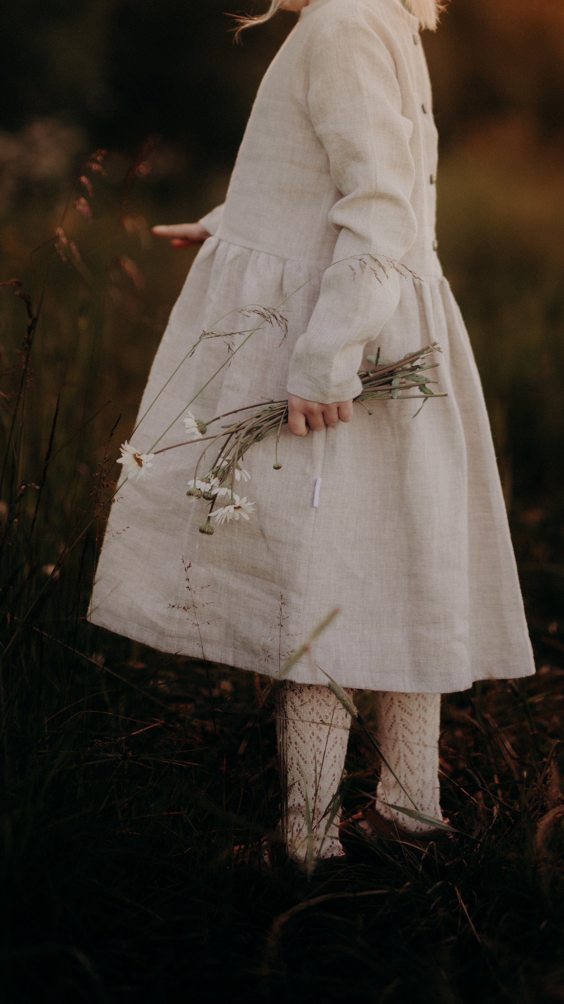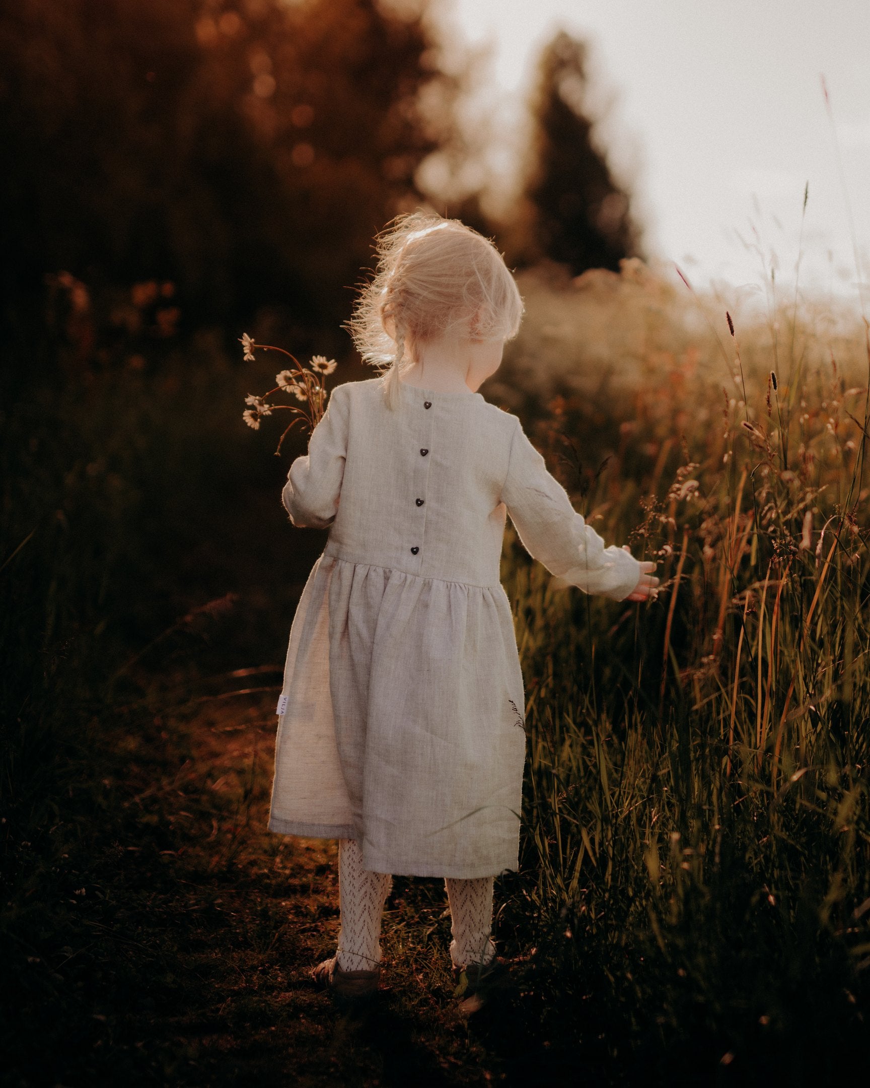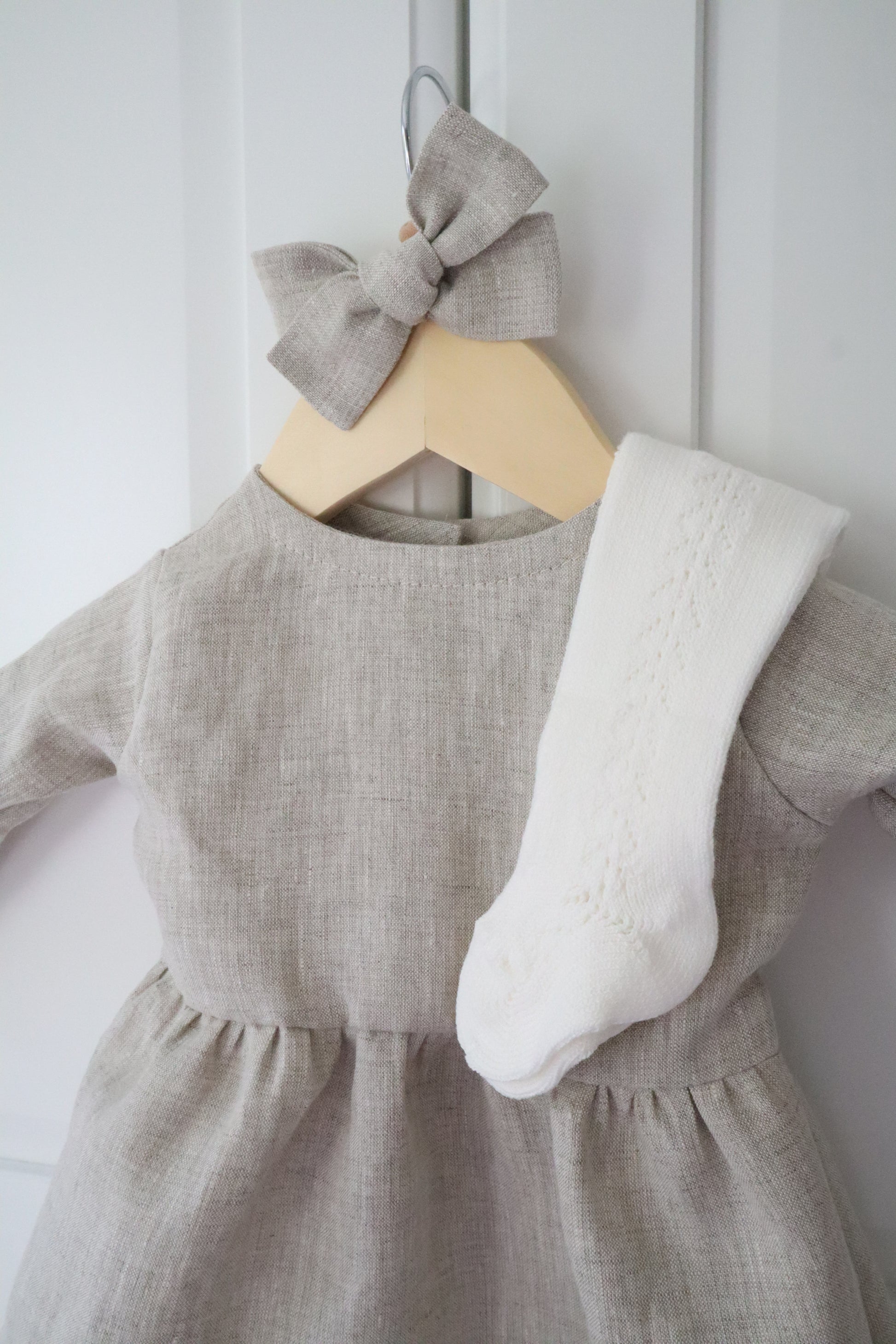 Ajattoman tyylikäs pellavamekko kauniilla sydämen muotoisilla napeilla. Sävy luonnonpellava.